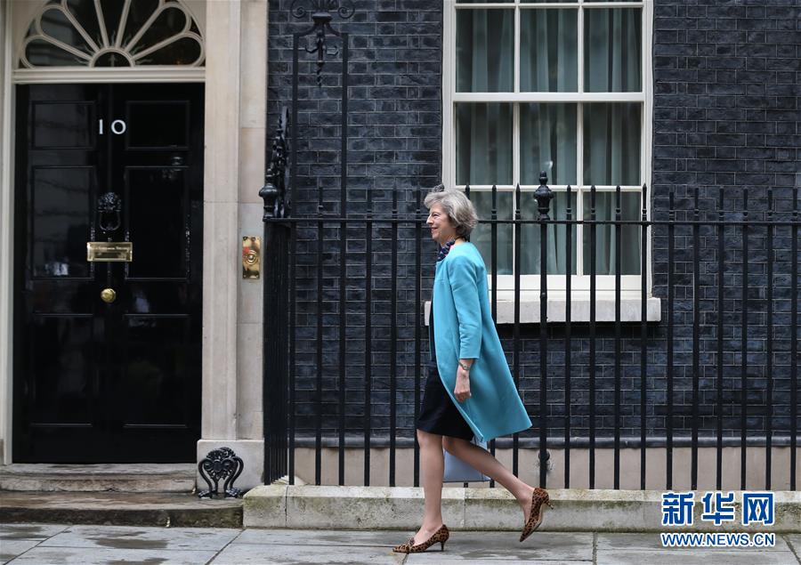 。這是6月27日英國內(nèi)政大臣特雷莎·梅參加完內(nèi)閣會議從倫敦唐寧街10號走出的資料照片。 新華社記者韓巖攝