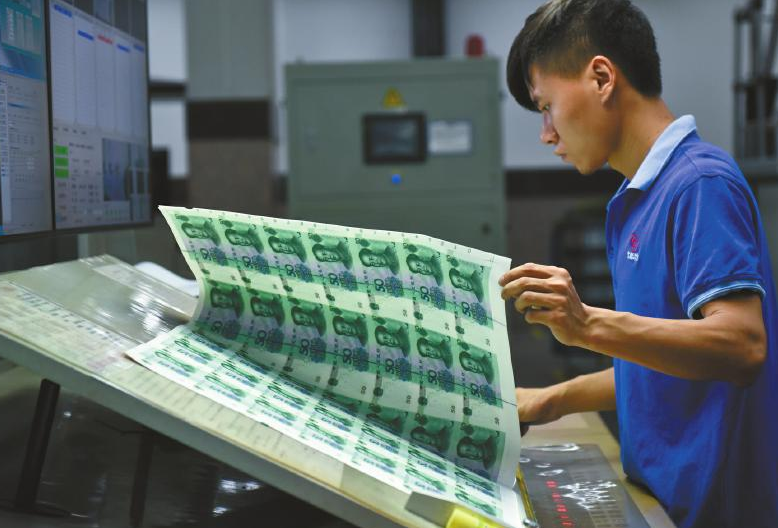 印鈔是一個(gè)精密的生產(chǎn)過(guò)程。據(jù)了解,印刷車(chē)間內(nèi)的氣溫必須保持恒定的工藝溫度范圍內(nèi),因?yàn)橐坏囟冗^(guò)高或過(guò)低,紙張會(huì)發(fā)生形變,使印刷圖像的位置偏移。在人民幣生產(chǎn)的全過(guò)程中,可以發(fā)現(xiàn)在每個(gè)機(jī)臺(tái)、每個(gè)工序都應(yīng)用了在線、離線質(zhì)量檢測(cè)設(shè)備,全過(guò)程對(duì)產(chǎn)品質(zhì)量進(jìn)行監(jiān)控。凹印工房里,工人小李拿著放大鏡,將凹印機(jī)里吐出的產(chǎn)品與手里的樣張認(rèn)真比對(duì)。他要檢查的內(nèi)容很多,是否有缺陷、瑕疵等等。小李告訴記者,“為確保萬(wàn)無(wú)一失,還會(huì)堅(jiān)持人工抽查?!?/p>
