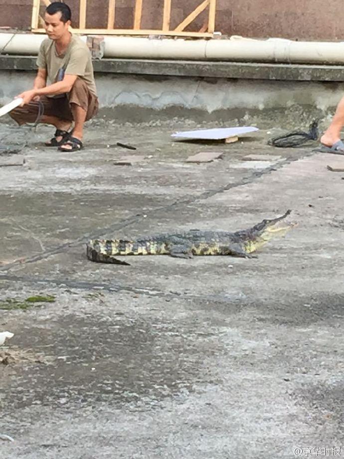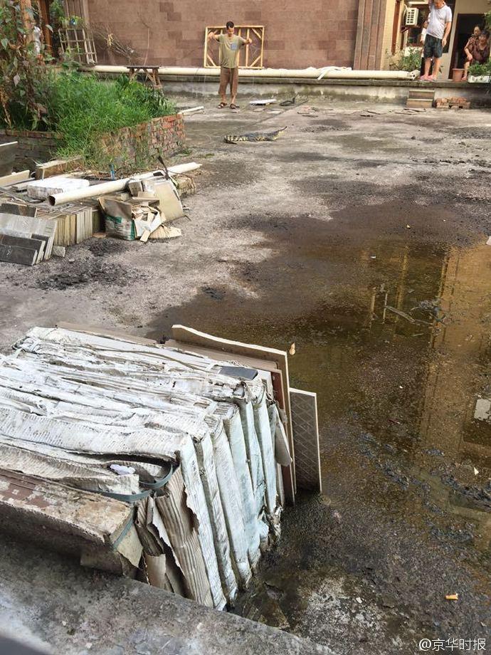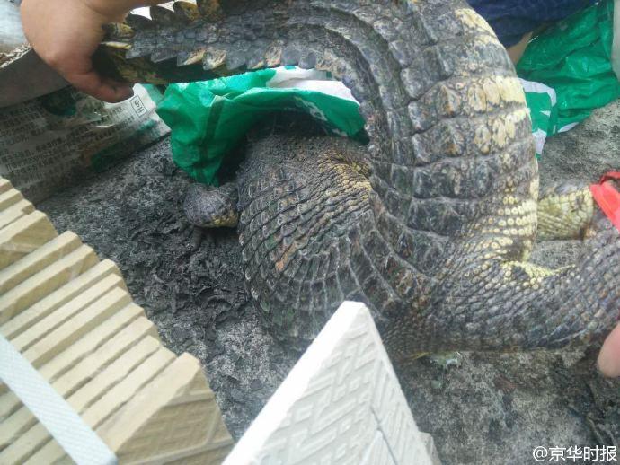 后來(lái)了解到,她家樓上5樓一住戶(hù)家里養(yǎng)了2條鱷魚(yú),昨晚其中一條從窗戶(hù)逃跑了。