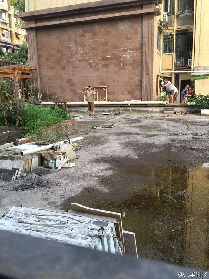 21日,四川省自貢市范女士告訴記者,昨晚樓上鄰居家的鱷魚(yú)“跳樓”了,掉進(jìn)她家一樓的小花園里。