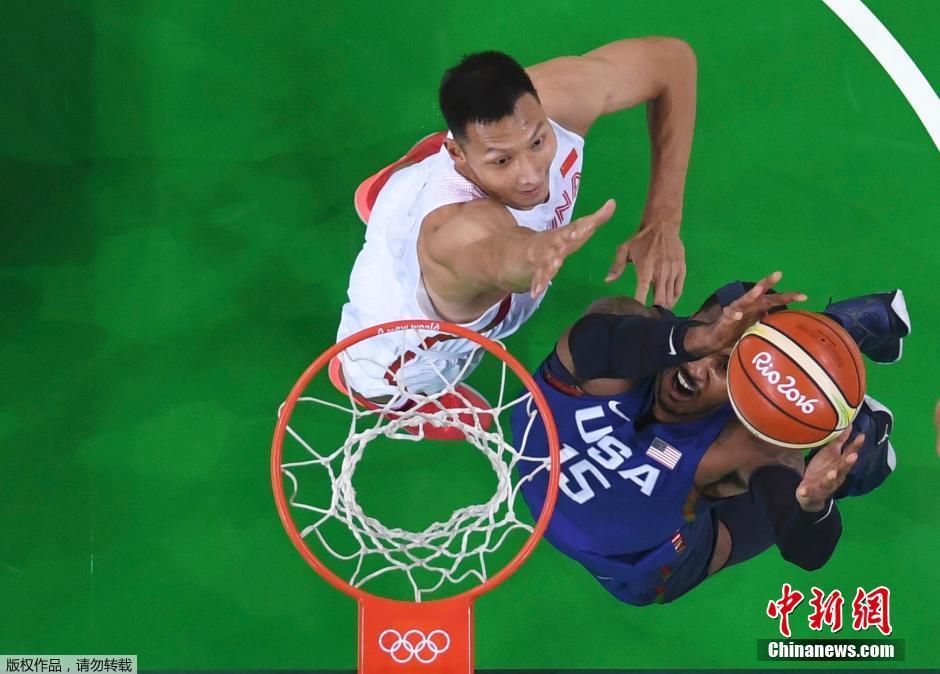 北京時間8月23日,湖人隊在官網(wǎng)上正式宣布簽下了易建聯(lián)。根據(jù)球隊的政策,合同細節(jié)并未透露。圖為當?shù)貢r間8月6日,巴西里約,2016里約奧運會男籃小組賽,中國男籃首戰(zhàn)美國隊,最終以62:119落敗。四次參加奧運會的易建聯(lián)斬獲25分。美國隊吉米·巴特勒防守易建聯(lián)。中新網(wǎng)記者 盛佳鵬 攝