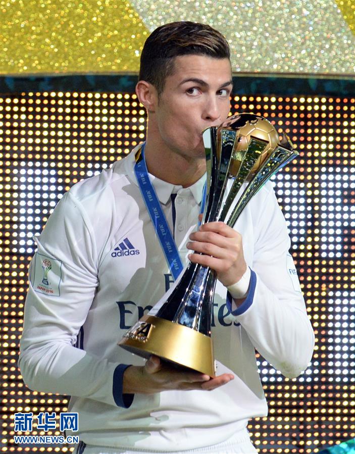 12月18日,皇家馬德里隊球員克里斯蒂亞諾·羅納爾多在本場比賽中上演“帽子戲法”,獲得世俱杯金球獎。新華社記者馬平攝