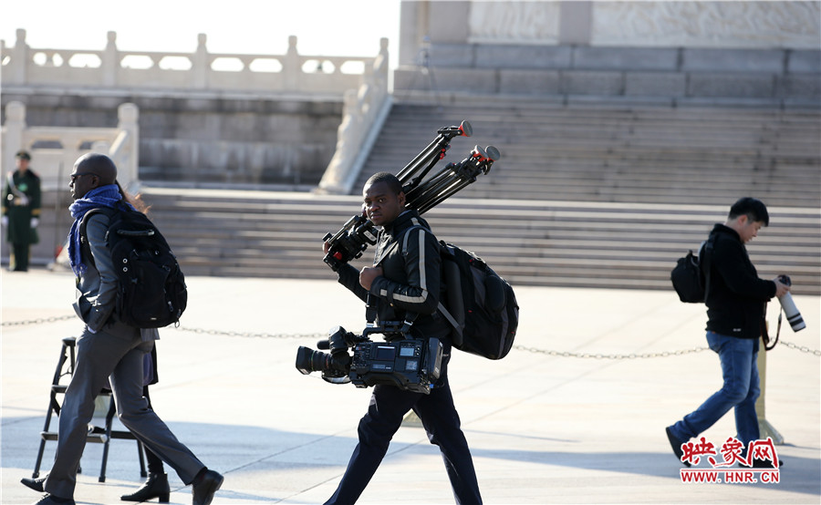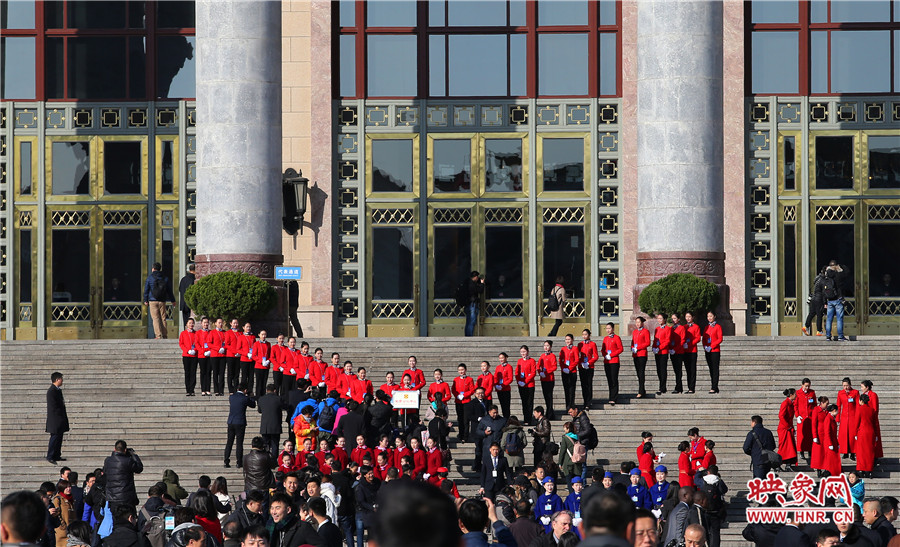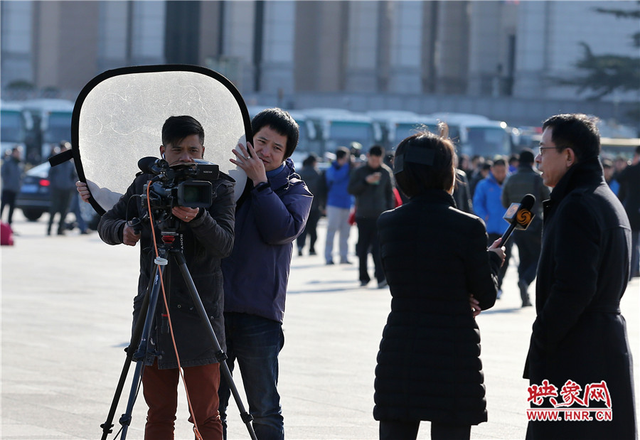 映象網(wǎng)北京訊(大象融媒飛象隊(duì)記者 段晉哲 文/圖)2017年3月5日,第十二屆全國人大五次會(huì)議在人民大會(huì)堂召開。場(chǎng)外的記者、安保人員、服務(wù)人員、保潔人員等都用自己的方式參與其中。他們?cè)谔彀查T廣場(chǎng)上和人民大會(huì)堂前,都留下了自己最美麗的身影。