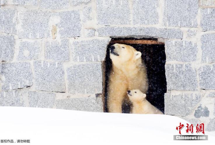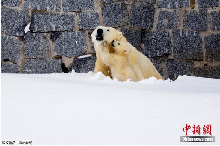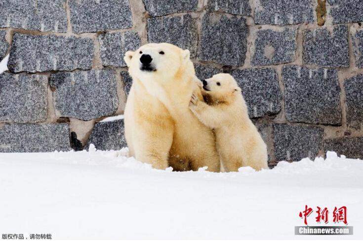 當?shù)貢r間3月15日,芬蘭一野生動物園內(nèi),北極熊母親帶著她的幼崽第一次在戶外亮相。小北極熊第一次在雪中玩耍,跟母親“求抱抱”。