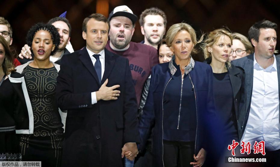 巴黎時(shí)間5月7日晚,法國總統(tǒng)選舉第二輪投票初步計(jì)票結(jié)果顯示,中間派獨(dú)立候選人、“前進(jìn)”運(yùn)動(dòng)領(lǐng)導(dǎo)人埃馬紐埃爾·馬克龍以大幅優(yōu)勢(shì)擊敗極右翼政黨“國民陣線”候選人馬麗娜·勒龐。年僅39歲的馬克龍由此成為法國史上最年輕的總統(tǒng),也成為世界上最年輕的大國領(lǐng)導(dǎo)人。圖為馬克龍的支持者在得知馬克龍當(dāng)選后歡呼。中新社記者 龍劍武 攝