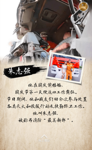 他在國(guó)慶前結(jié)婚,國(guó)慶節(jié)第一天便返回工作崗位。節(jié)日期間,他和戰(zhàn)友們40余次參與處置各類(lèi)滅火和救援行動(dòng)及執(zhí)勤保衛(wèi)工作。他叫朱志強(qiáng),被稱(chēng)為消防“最美新郎”。