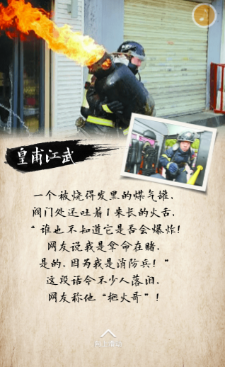 原本休假的他帶著兒子出去玩,偶遇火災(zāi),他將不滿兩歲的孩子托付給陌生路人照看,拿著滅火器,不顧個(gè)人安危,沖向樓頂滅火。他說(shuō):“我是消防員,不論任何時(shí)候,無(wú)論身上是否有軍裝!”