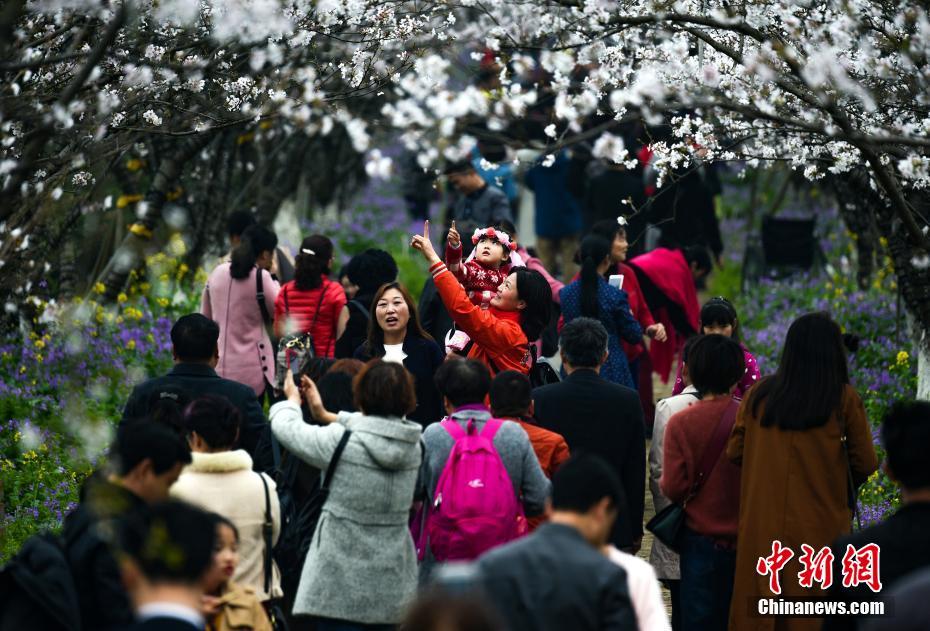 江西南昌鳳凰溝櫻花盛放,形成延綿萬米的櫻花隧道,場面極為壯觀,游人絡(luò)繹不絕。 鮑贛生 攝