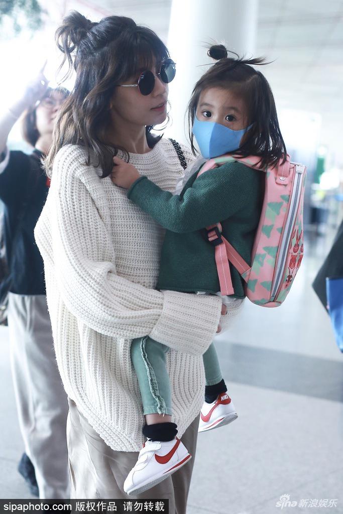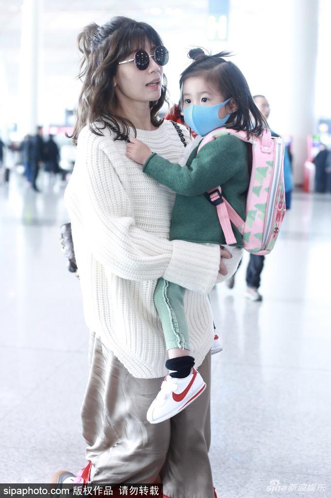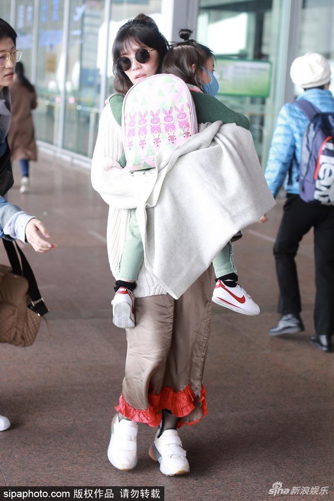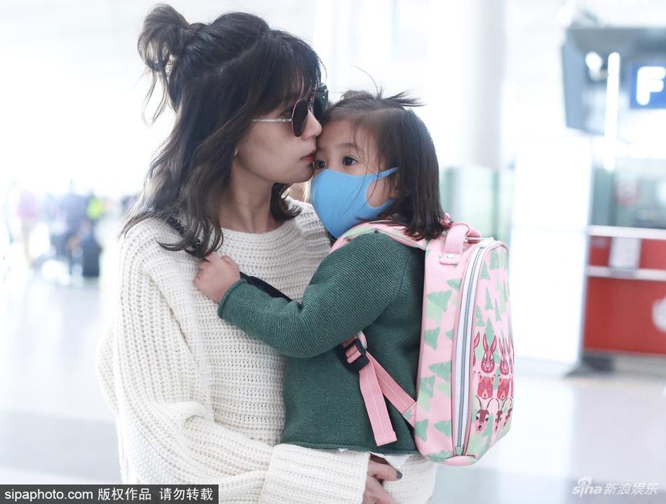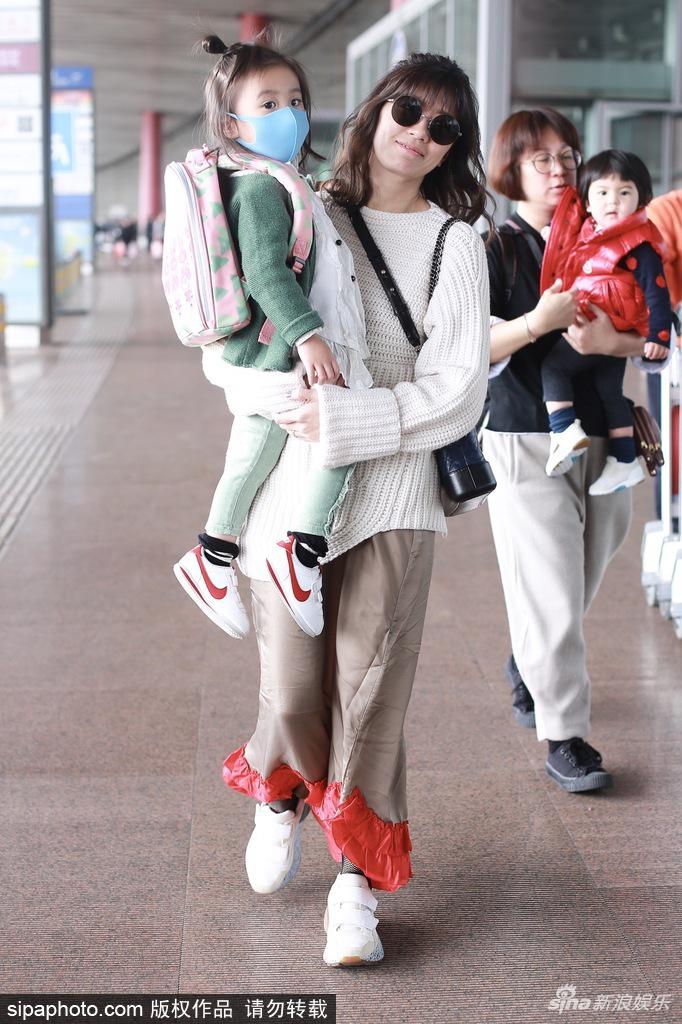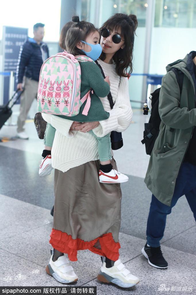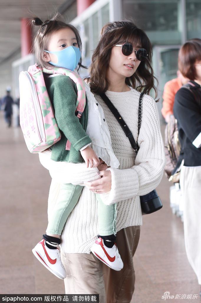 2018年3月20日,北京,賈靜雯抱女兒咘咘現(xiàn)身北京機場。