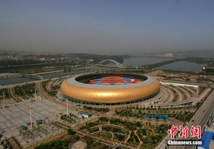 河南省三門峽市,站在三門峽文化體育中心對面的高樓向下看,體育場如同一個巨大的“聚寶盆”,成為當地一道靚麗風景。