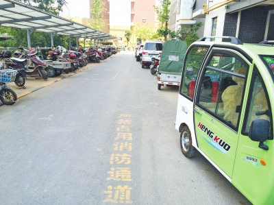 鄭州冉屯新村南院,不少車輛停在消防通道上。