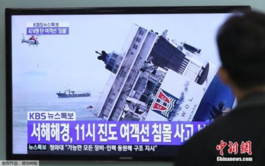 據(jù)外媒報道,當?shù)貢r間16日上午8時58分許,一艘載有470余名乘客的“歲月(SEWOL)號”客輪在韓國西南海域發(fā)生浸水事故。圖為當?shù)貢r間2014年4月16日,韓國民眾關(guān)注客輪沉沒的電視新聞報道。