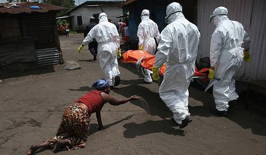當(dāng)?shù)貢r(shí)間2014年10月10日,利比里亞首都蒙羅維亞,運(yùn)尸隊(duì)將感染埃博拉死亡的尸體運(yùn)去火化,親人悲痛欲絕