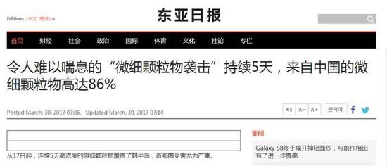 《韓聯社》3月27日:來自中國的霧霾在惡化,對策也灰蒙蒙