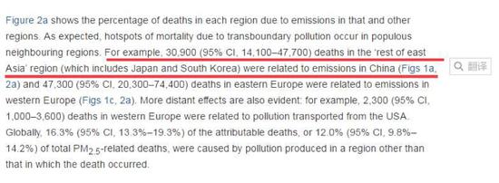 翻譯:東亞其他地區(qū)(包括日本韓國)有3.09萬人的死亡與中國的污染物排放存在關聯。(2007年數據——環(huán)環(huán)注)