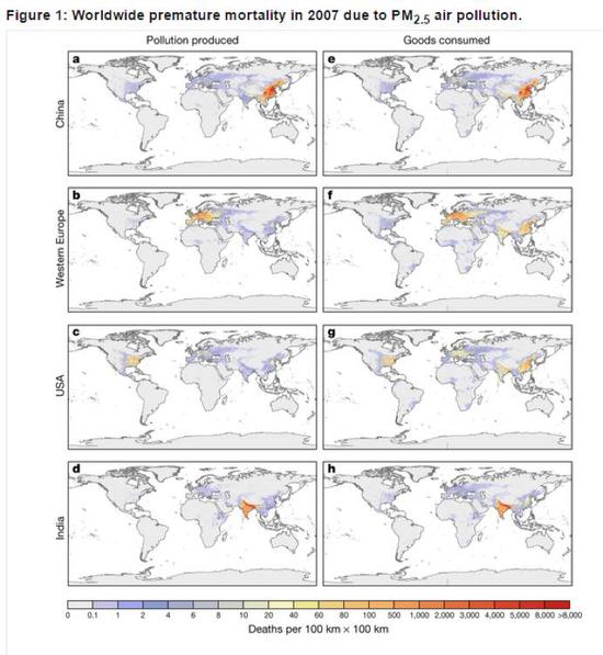 另外,環(huán)環(huán)(ID:huanqiu-com) 發(fā)現這篇研究中提到,中國在全球貿易中所受到的污染影響更為嚴重。其中,中國有超過10.86萬人過早死亡與西歐、美國的消費相關聯。