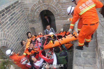 人民網(wǎng)北京10月21日電 據(jù)北京市公安局官方微博消息,昨日,北京消防接到報警稱一名游客被困野長城,到達(dá)現(xiàn)場后發(fā)現(xiàn)被困者是一名60歲左右外籍女游客,因踩到碎石不慎摔傷,多處骨折,右肩脫臼并有輕微腦震蕩。消防官兵利用軀體固定氣囊,將被困者固定。經(jīng)1個小時艱難跋涉,終將被困者送到山下。