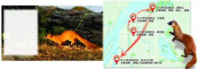 居住在鼓樓區(qū)煤炭港附近的知情居民武先生也是一名動物攝影愛好者,據(jù)他多年的攝影經(jīng)驗和追蹤觀察,總結(jié)勾畫出黃鼠狼在南京城北的一張“覓食行蹤圖”,2011年黃鼠狼出沒在下關(guān)多倫路一帶的居民區(qū),那里居住密集,也“養(yǎng)肥”了不少老鼠,它們成了黃鼠狼的美餐,據(jù)他觀察,每只黃鼠狼一夜間可捕食6只老鼠。2012年,多倫路一帶開始動遷,黃鼠狼們轉(zhuǎn)戰(zhàn)方家營,仍以老鼠為主食。之后黃鼠狼又來到幕府山一帶,主要以野兔、昆蟲和蚯蚓為食。今年黃鼠狼把目光瞄準(zhǔn)到揚子江大道濱江外灘,那里臨江多水,在傍晚退潮時,小魚小蝦都“跳到了黃鼠狼的口里來”。多年的黃鼠狼拍攝追蹤經(jīng)歷也使得武先生因此混出個“武大狼”的綽號。