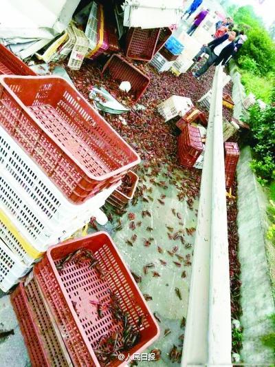 昨日中午11時(shí)許,省高警仙桃大隊(duì)接到過(guò)路司機(jī)報(bào)警:漢宜高速永安服務(wù)區(qū)附近1輛小貨車側(cè)翻,車上裝載的小龍蝦潑撒一地,有村民在哄搶。