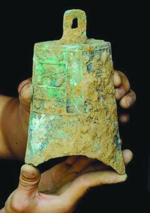 這是考古人員清理出的一組編鐘中的一個(gè)。