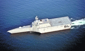 從軍事角度上來說,獨立級是第一種以實戰(zhàn)為目的三體艦艇。三體艦的設(shè)計可以在較小排水量的條件下,帶來更大的甲板面積,這對瀕海戰(zhàn)斗艦有著獨特的意義。因為美國海軍要求這種新型艦艇不但可以在近海進(jìn)行海戰(zhàn),還要具備相當(dāng)?shù)倪\(yùn)輸能力,能夠有同時操作兩架直升機(jī)的大型甲板。