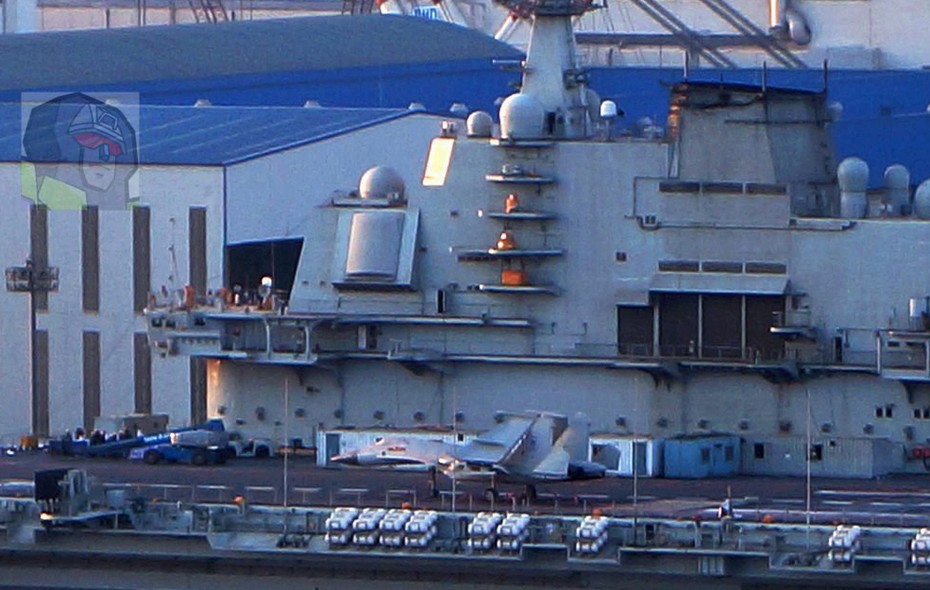 2012年2月28日,據(jù)網(wǎng)友拍攝的照片顯示,正在大連進行改裝的瓦良格號航母的改裝工作有了最新進展,甲板上出現(xiàn)了兩架類似艦載機的模型。(超大軍事 從小就黑供圖)