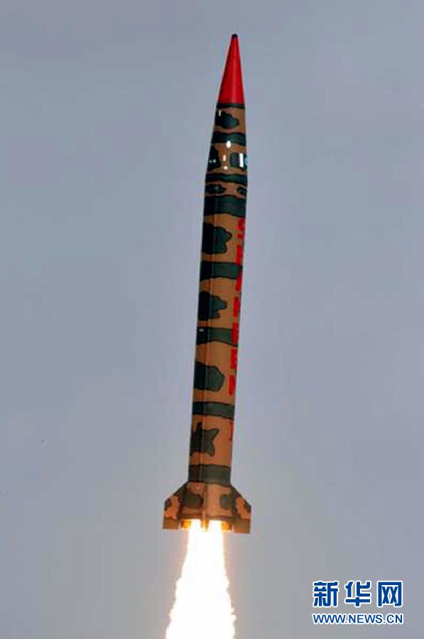 這張由巴基斯坦國際公共關(guān)系服務(wù)部門(ISPR)4月25日發(fā)布的照片顯示了成功發(fā)射的可攜帶核彈頭的中程彈道導(dǎo)彈。巴基斯坦軍方25日發(fā)表聲明稱,巴基斯坦當(dāng)天成功發(fā)射了可攜帶核彈頭的中程彈道導(dǎo)彈,并成功擊中海上預(yù)定目標(biāo)。