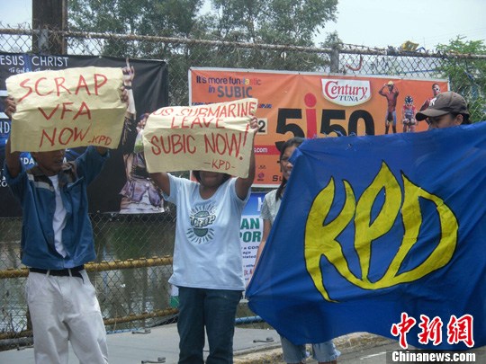 組織抗議活動(dòng)的菲“全國(guó)民主運(yùn)動(dòng)”發(fā)布新聞稿中稱,參加抗議的民眾在蘇比克灣都市管理局大門前高舉標(biāo)語(yǔ),呼喊口號(hào)要求“美國(guó)潛艇立即離開蘇比克”,“立即廢除菲美《訪問部隊(duì)協(xié)議》(VFA)”。