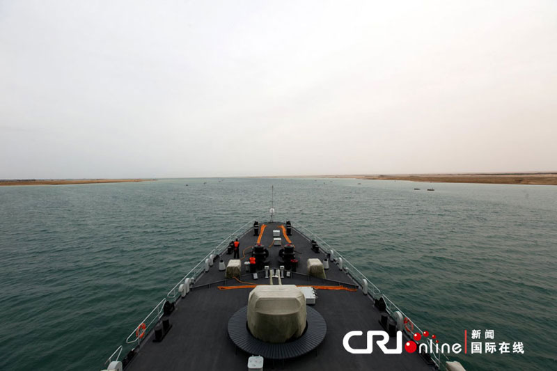 國際在線報道(記者王智達、曹金平):當?shù)貢r間27日清晨6時(北京時間中午12時),執(zhí)行“和諧使命——鄭和艦環(huán)球行”任務的中國海軍遠洋航海訓練艦“鄭和”艦,在埃方引水員引導下,緩緩駛入世界聞名的蘇伊士運河。圖為鄭和艦駛入蘇伊士運河 王智達攝