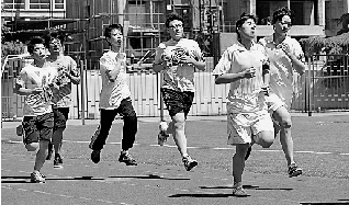今年中招體育考試滿(mǎn)分仍為50分,由七、八、九年級(jí)體質(zhì)與健康過(guò)程管理綜合評(píng)定成績(jī)(6分)和九年級(jí)升學(xué)體育考試成績(jī)(44分)兩部分組成,兩項(xiàng)相加后記入升學(xué)總分??荚図?xiàng)目分必考和選考兩類(lèi)。必考項(xiàng)目為長(zhǎng)跑(男生1000米、女生800米)。選考項(xiàng)目分為三類(lèi):50米跑、跳繩;擲實(shí)心球、立定跳遠(yuǎn);籃球運(yùn)球、足球運(yùn)球。