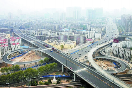 昨天上午,京沙快速通道工程工程監(jiān)理王柳洋,帶記者體驗(yàn)了該路高架橋路段。由京沙快速通道與中原路交叉口北上,路中央已畫有兩條黃線。行至解放路高架橋頂端,可見從該路分出的匝道,形成兩條線路一南一北并入京沙快速通道。向北駛?cè)?strong>金水路、北三環(huán),向南駛?cè)胫性?、南三環(huán),“兩條高架橋的連接,能最大限度地緩解二七廣場區(qū)域及未來火車站西出站口的交通壓力?!蓖趿蠓Q,在京沙快速通道一期工程中,跨解放路高架橋、隴海鐵路、金水路系最為復(fù)雜的工程。