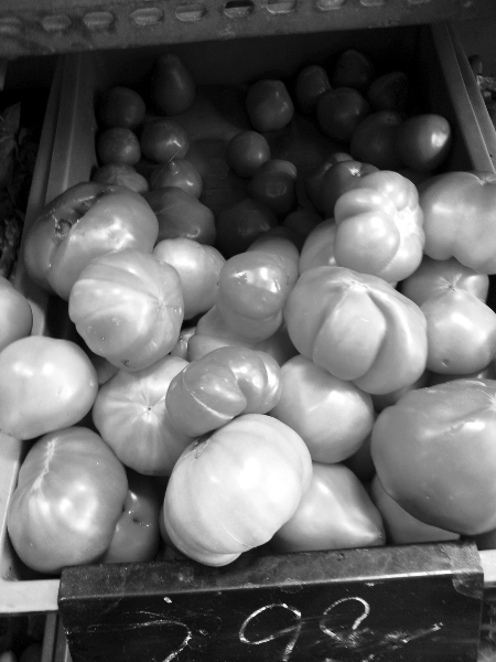 在市區(qū)其他菜市場,不少攤點(diǎn)上也都是這樣的畸形果。超市工作人員說,最近批發(fā)來的番茄都這樣,價(jià)格也不便宜。