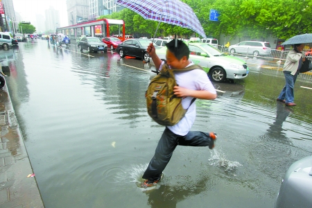 昨天下午3時,記者在東風路與文化路交叉口的地下隧道內(nèi)看到,有轎車已被水淹滅了,難以動彈,地下隧道中的積水可沒過輪胎。金水路與東明路交叉口西約100米路南,積水嚴重,水深幾乎沒過轎車輪胎。豐慶路與三全路交叉口附近的豐慶路小學門前也是宛如“海洋”,積水沒過自行車大半個車輪。放學的部分小學生無法通行,被人背著過路。巡防隊員解釋稱,此處地勢低洼,排水不暢,逢雨必淹,孩子們雨天上下學很不安全。