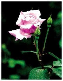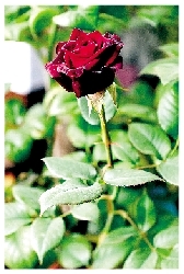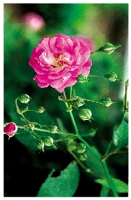 月季 小葉少,3~5片,但小葉較大,長(zhǎng)2.5~6.0厘米。葉面較平,不凹陷,無皺紋。枝直立 ,刺少, 新枝的枝端都有花。