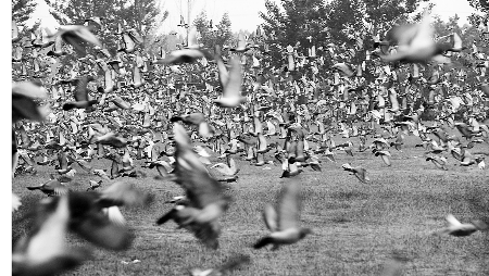 昨日早上六點,在省體育中心,第13屆信鴿國家賽正在舉行。近8萬只來自全國15個省市的65家單位的信鴿隨著一聲槍響,開始了馬拉松式回巢。
