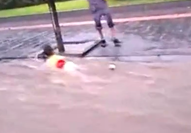 安陽暴雨:女孩倒地被沖著走