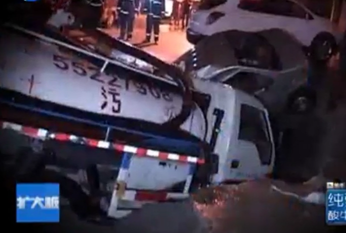 鄭州道路再塌陷 同時(shí)吞倆車(chē)