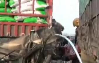 十車連環(huán)撞 轎車被擠扁