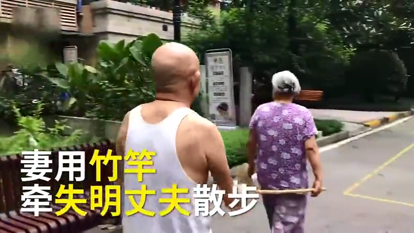 妻用竹竿牽失明老伴:年輕時一見鐘情