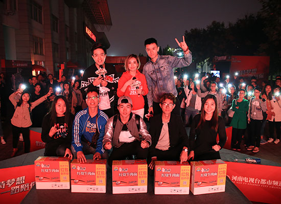 昨天,不僅是康師傅紅燒牛肉面《名嘴K歌秀》校園海選的首站,也是都市頻道十九歲的生日,一開場,三位評委就帶領(lǐng)現(xiàn)場所有的同學(xué)和參賽選手們,一起大唱《生日快樂》歌,共同祝愿都市頻道生日快樂,收視長虹!雖然天空中飄著淅淅瀝瀝的小雨,卻絲毫沒有影響同學(xué)們的熱情,上午的樂隊比拼和下午的歌手選拔,共吸引了近百名參賽選手?;顒右恢背掷m(xù)到天黑,很多同學(xué)還為下課晚沒有趕上報名而感到遺憾,紛紛追問下一場校園海選的時間。值得一提的是,本次活動不僅吸引了本校的很多學(xué)子,外校的許多音樂愛好者也紛紛前來參加,連外國友人看了康師傅紅燒牛肉面《名嘴K歌秀》的節(jié)目宣傳后,都立刻現(xiàn)場報名,一位外籍選手演唱的《加州旅館》引來掌聲尖叫聲此起彼伏,而眾多小鮮肉的演唱也是讓現(xiàn)場圍觀的妹子們都不淡定了。作為康師傅紅燒牛肉面《名嘴K歌秀》校園海選河大站的評委,在如此火爆的現(xiàn)場怎么能只說不唱呢?都市頻道《都市報道》的主持人林泉、河南電臺FM90.0 My Radio 的Seven也都分別演唱了自己的拿手曲目。整場活動持續(xù)到天黑才結(jié)束,最后的大合影是所有選手打開手機閃光燈充當(dāng)人肉背景才完成的。