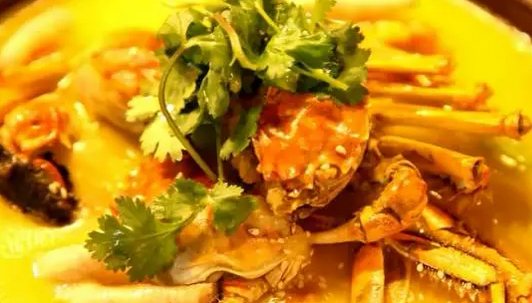 這道連機器人都要激動得把持不住的菜品呢,是這里的招牌菜湖蟹煲了。這道菜好吃的訣竅之一呢,就是食材好。正宗的陽澄湖大閘蟹,蟹膏豐滿晶瑩剔透相當(dāng)誘人。這道菜的做法其實是相當(dāng)簡單的,簡單的炸制之后呢,就是用高湯煨煮,燉出原汁原味。
