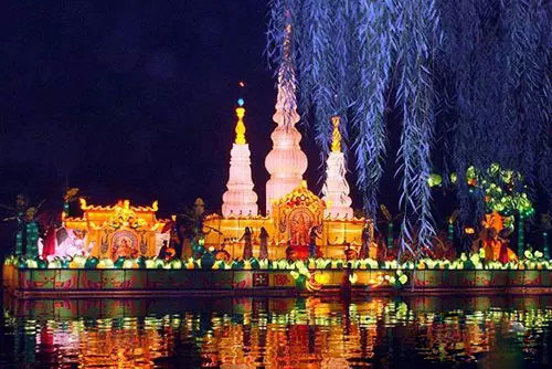 漢明帝永平年間(公元58--75),因明帝提倡佛法,適逢蔡愔從印度求得佛法歸來,稱印度摩喝陀國每逢正月十五,僧眾云集瞻仰佛舍利,是參佛的吉日良辰。漢明帝為了弘揚(yáng)佛法,下令正月十五夜在宮中和寺院"燃燈表佛"。此后,元宵放燈的習(xí)俗就由原來只在宮廷中舉行而流傳到民間。即每到正月十五,無論士族還是庶民都要掛燈,城鄉(xiāng)通宵燈火輝煌。