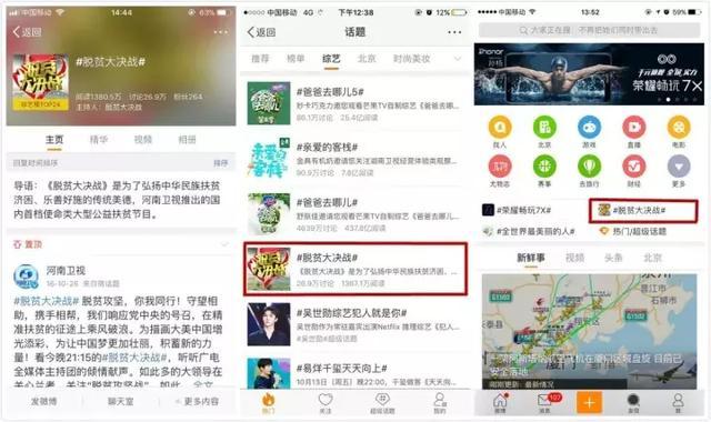 節(jié)目播出至今,“脫貧大決戰(zhàn)”早已在網(wǎng)絡社交平臺上引起了網(wǎng)友熱議。人民網(wǎng)、光明網(wǎng)、央視網(wǎng)、中國網(wǎng)、環(huán)球網(wǎng)、騰訊、新浪、網(wǎng)易、今日頭條、百度等數(shù)百家媒體進行轉載,新浪微博、微信公眾號等大量自媒體號廣泛傳播。統(tǒng)計顯示,截至11月30日,《脫貧大決戰(zhàn)》在新浪微博話題綜合榜上排名第七,全國綜藝榜排名第二,新浪微博閱讀量達到了7990萬。