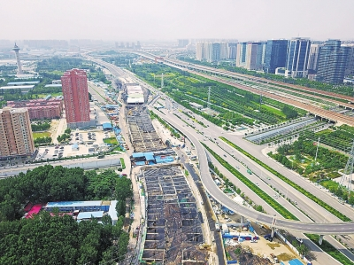 “2016年12月31日,北三環(huán)至隴海路高架主線通車;2017年1月22日,下穿六條高鐵至南三環(huán)高架橋通車;2017年5月27日,實現(xiàn)了北三環(huán)至北四環(huán)高架主線全部通車?!痹擁椖控撠熑苏f,全線高架主線已于今年5月27日貫通,全線地面道路計劃于今年9月底前通車。