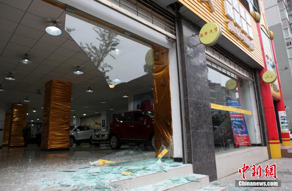 女司機撞爛售車大廳玻璃門 頂石墩狂奔20余米