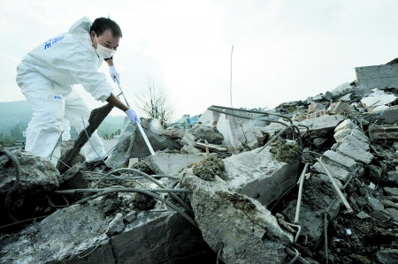 救援人員正用生命探測儀探測